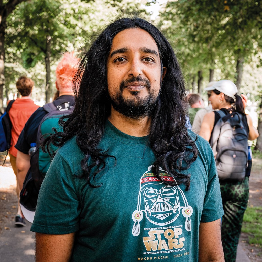 My name is Shanthuru Premkumar and my pronouns are they/them. I am Tamil from today’s Sri Lanka. I’m at the moment living and working in Brussels. My relationship to this land has to do with my connection and the work I do within the climate movement at large.