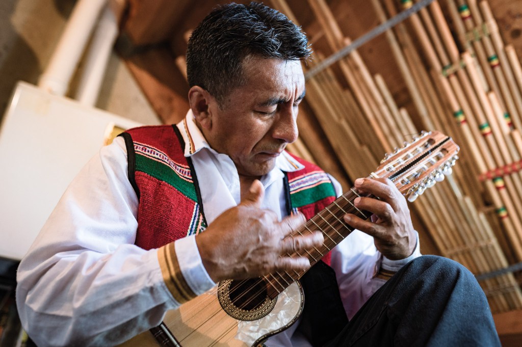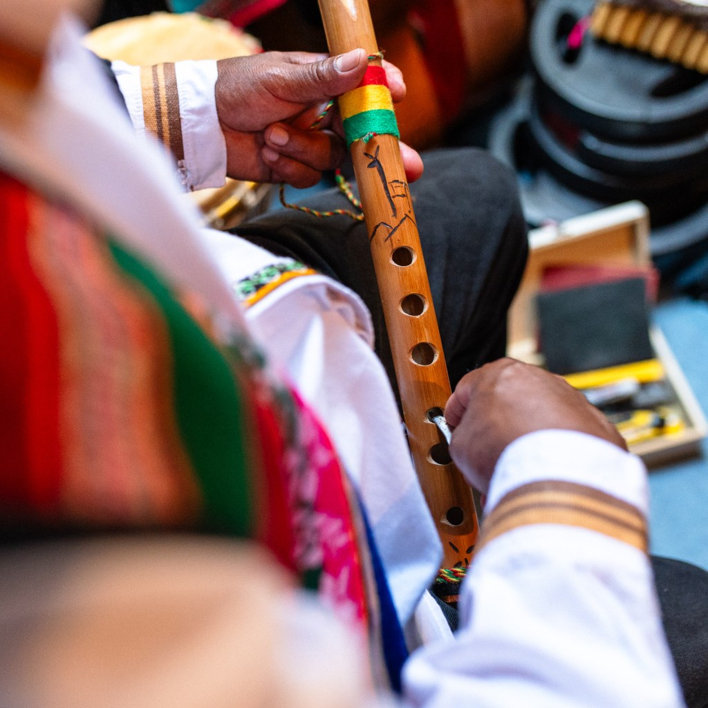 But I had no idea where the country was located. I grew up as a musician. I have been a musician since I was four years old. In my village it is tradition, and everyone passes it on. So I’m a traditional musician – not commercially. I left the village to go to school in the city and from there I went abroad. I had friends in Argentina and I met a lot of musicians there. They invited me, me propusieron, to play with them in a big theater. I don’t want to be boastful, but I was always good at traditional music. Those were really big concerts. I liked that then. And I even got money. That was my first time getting paid. I liked that. And immediately afterwards the boys said: ‘Do you want to play with us, we are going on a trip’. Thus began my adventure. I traveled throughout Latin America, Central America, the United States and all of Europe. And then I stayed here. I found my wife. I was alone all year round. Then I found someone; she was caring and stood by me. I thought that was special. And now I have two beautiful gifts for life: a boy and a girl. I’m still here and I’m working really hard. And of course I cannot forget my background, my tradition of my ancestors. The name of the group I founded, Yatiyana, means ‘what you have, you must pass on’.