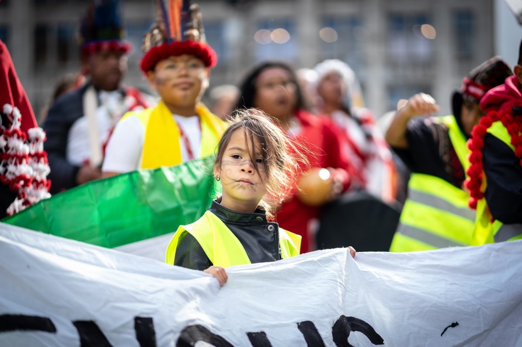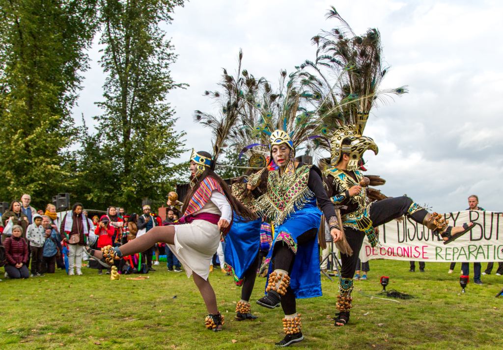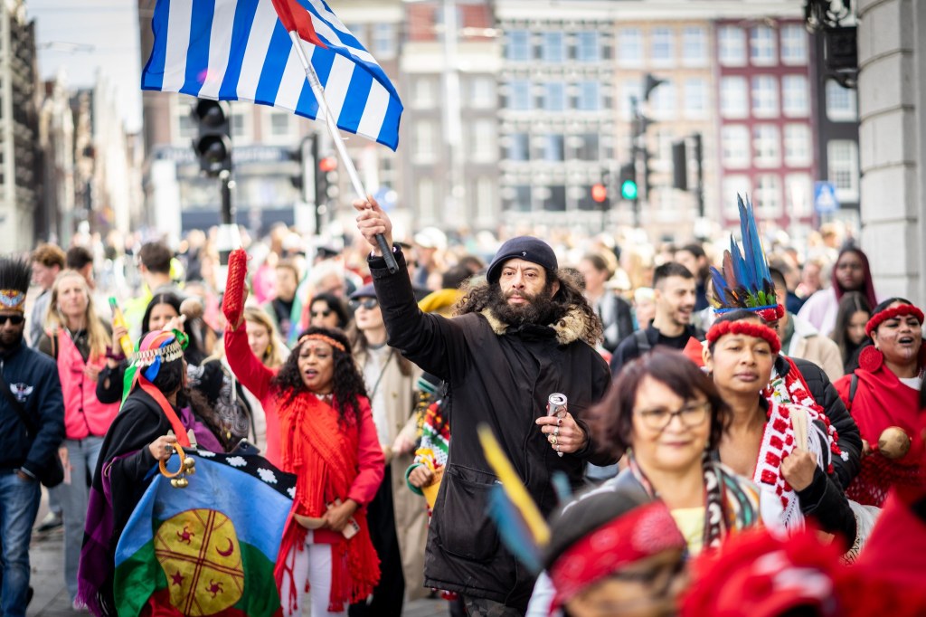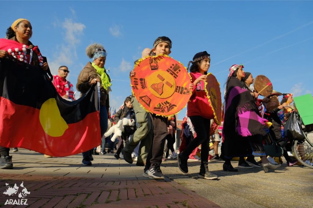 Racism against Indigenous people is often marked by the denial of Indigenous existence. Indigenous people are imagined in the past and far away. Hence protesting and making ourselves and our struggles visible is a vital part of building a movement for Indigenous liberation. Here in the Netherlands, the marches have also functioned as a place to connect with other Indigenous people and allies. Indigenous people can be all shades of skin color and you can not tell from looking at a person if they are (mixed) Indigenous in their identity. The marches were marked by ceremony, grievances (over open wounds of colonialism) and joy (over connecting with other Indigenous people and allies). Our existence is resistance. Our protests were a public place of pride and community-building.